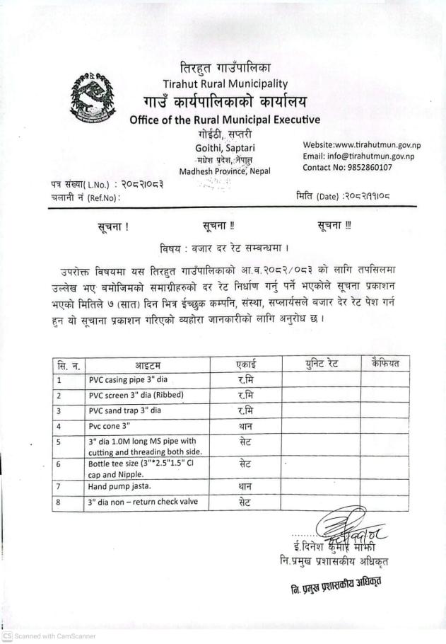 बजार दर रेट सम्बन्धमा ।