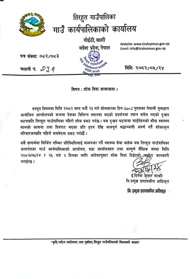 शोक बिदा सम्बन्धमा ।