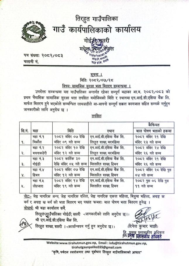 सामाजिक सुरक्षा भत्ता वितरण सम्बन्धमा ।