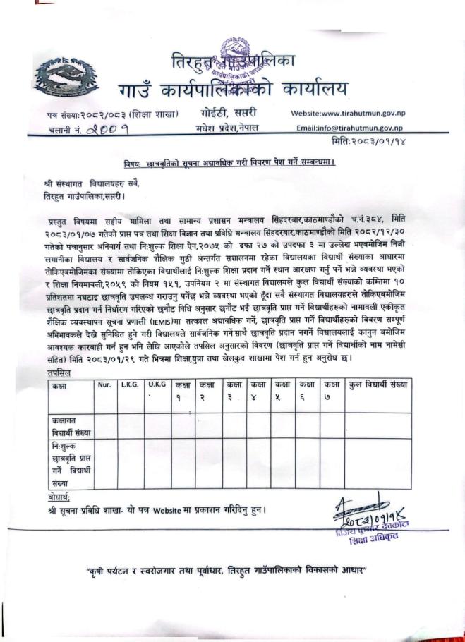 छात्रवृतिको सूचना अधावधिक गरि विवरण पेश गर्ने सम्बन्धमा ।